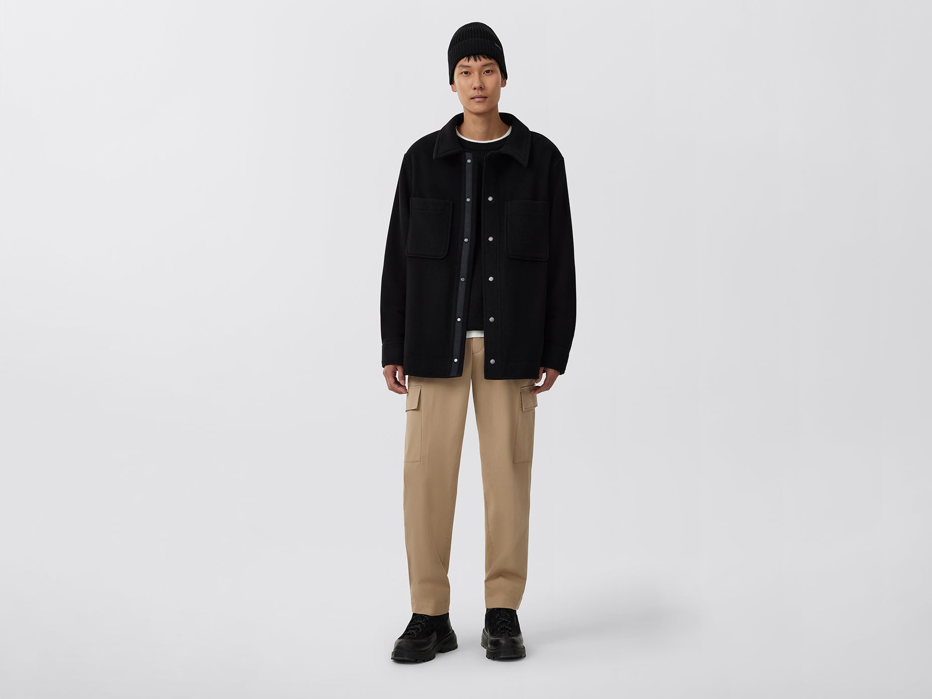 The Balas Shirt Jacket has a minimalistic silhouette and can be worn as a layering piece or outer layer. It�s crafted from Melton Wool, a brushed fabric selected for exceptional softness and luxe hand-feel with natural performance qualities.