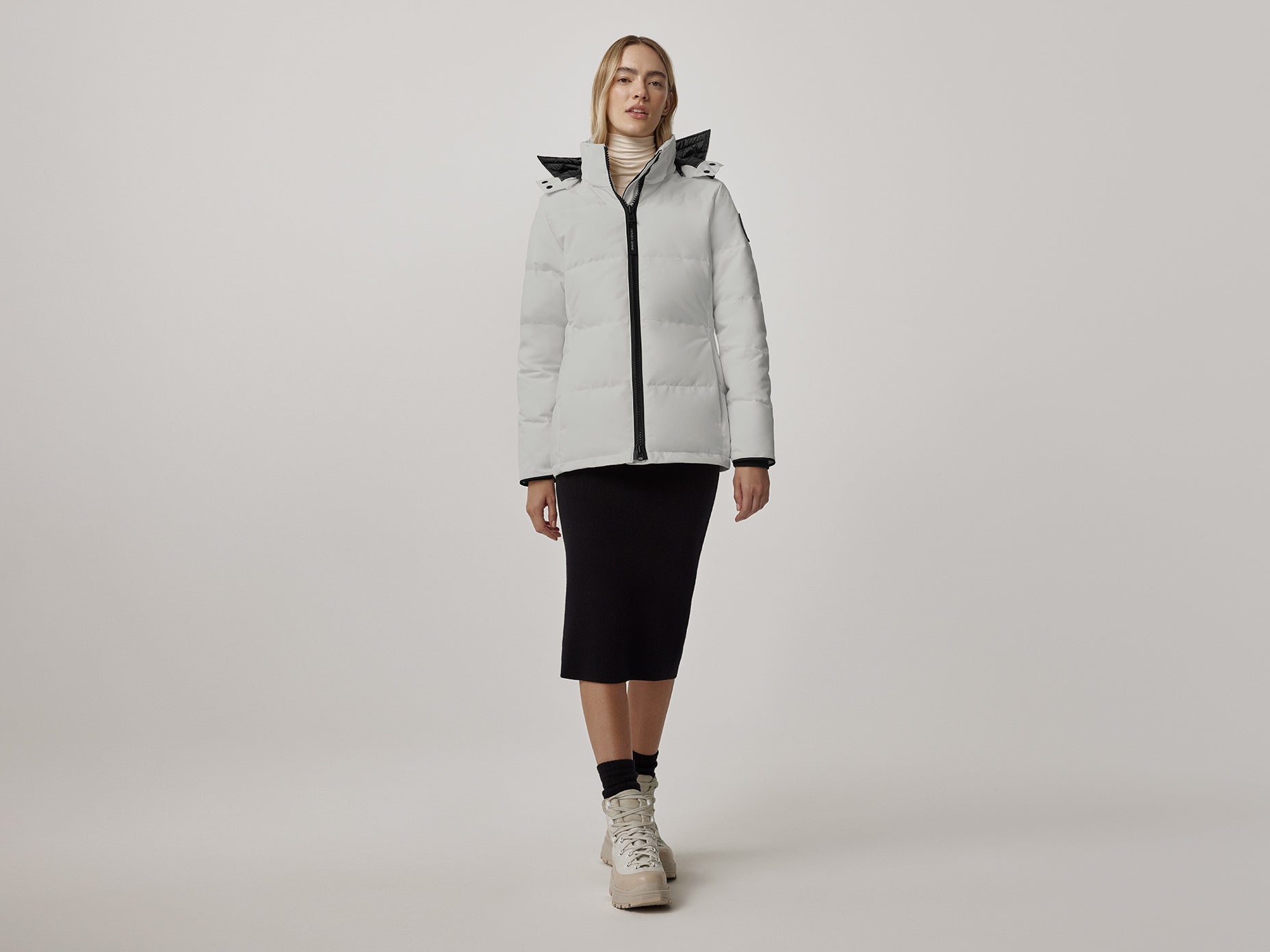 One of our most-loved styles, the Chelsea Parka, gets an update with streamlined hood details, elevated trims, and additional inside pockets. Minimalist aesthetic with delicate quilting and a clean, hip-length cut. Customize your parka and extend the coverage of your hood with a variety of our interchangeable Hood Trim accessories.