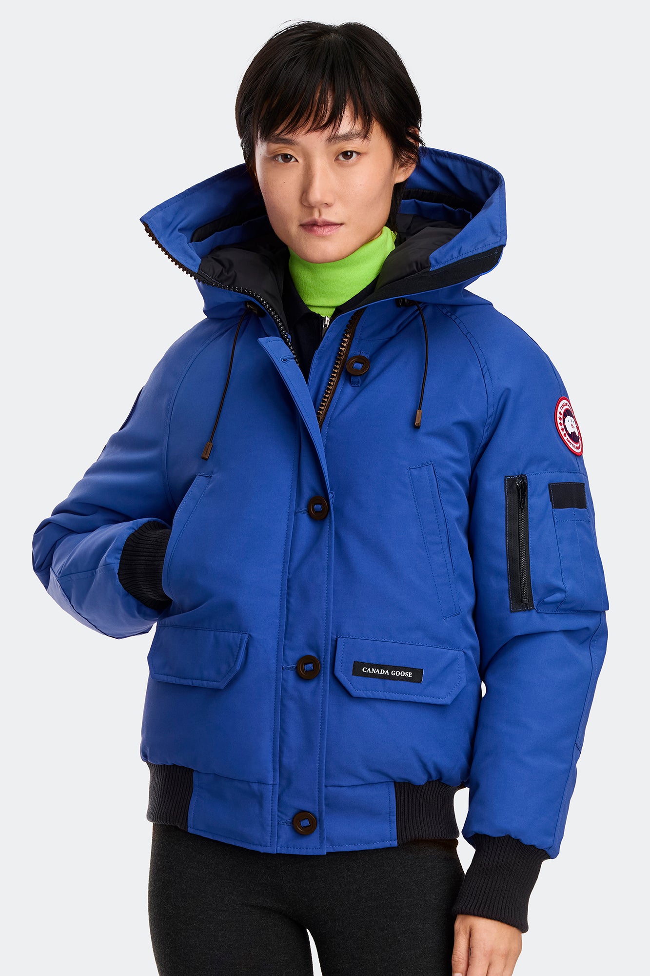 One of our most-loved styles, the Chilliwack Bomber, gets an update with streamlined hood details and elevated trims. Developed for post-war bush pilots in Canada’s North, the Chilliwack Bomber provides the durability, warmth, and mobility these pilots needed when working on Arctic runways . An enduringly popular and iconic style, the Chilliwack is one of Canada Goose’s most beloved jackets. The Polar Bears International (PBI) logo disc means a portion of proceeds from the sale of this item will go directly to supporting research by PBI and the preservation of polar bear habitats. Customize your parka and extend the coverage of your hood with a variety of our interchangeable Hood Trim accessories.