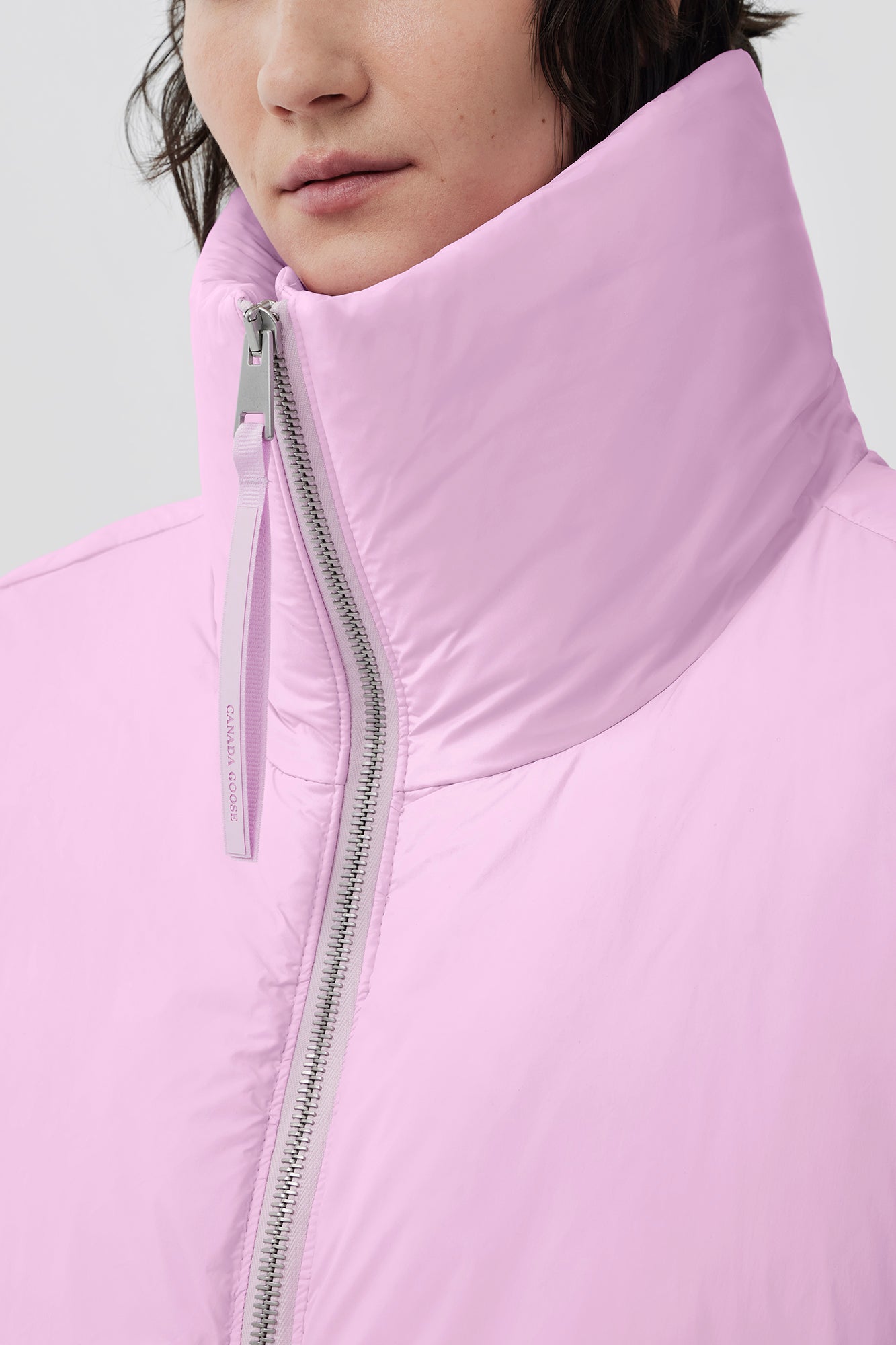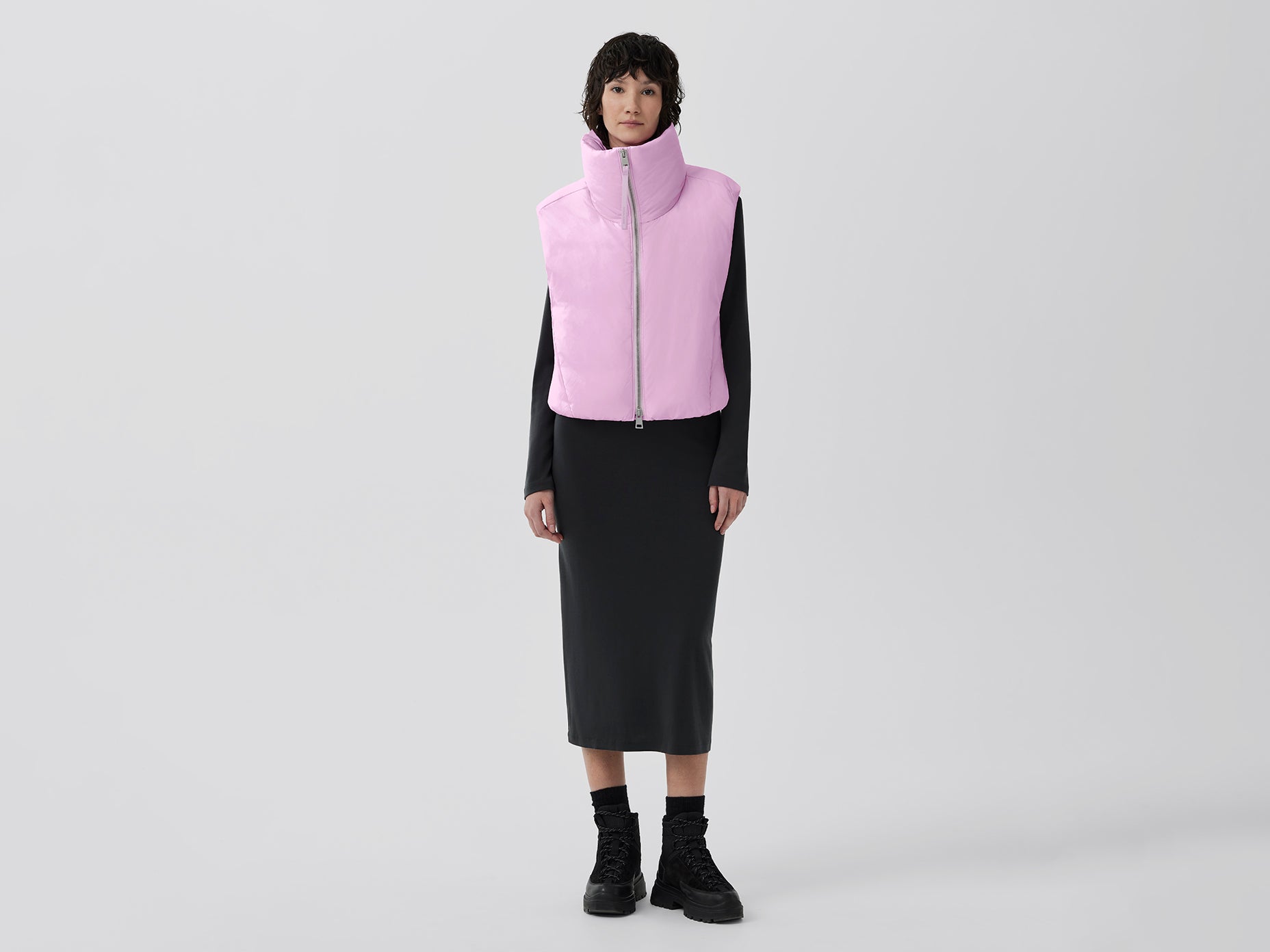 The Spessa Collection features a minimalistic, clean design with flattering, feminine details. The Spessa Cropped Vest has a dramatic high collar, two-way zipper and elasticized hem. It’s made with Lumina, a butter-soft, ultra-lightweight fabric with a sheen finish making it the ideal companion for urban outdoor excursions.